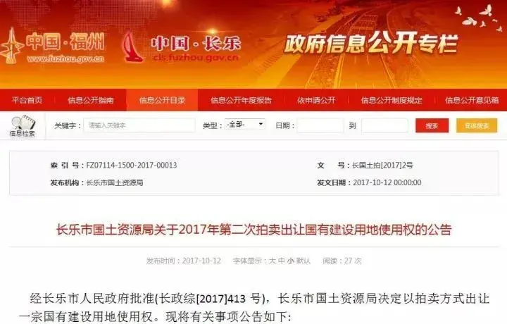 拍卖定于2017年11月2日上午10:00在长乐市国土资源局(十洋国际城九楼会议室)举行。